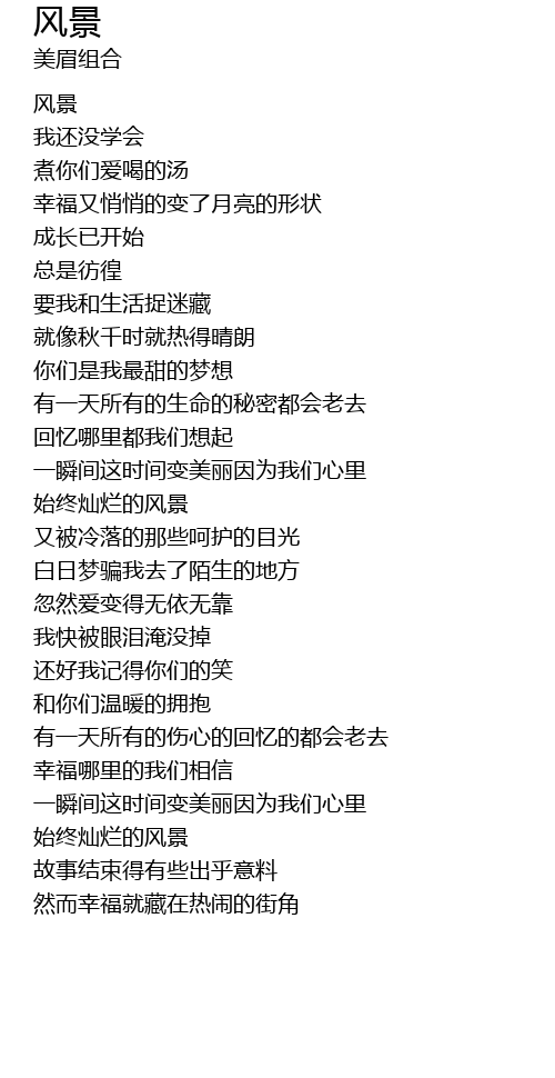 风景 feng jing Lyrics