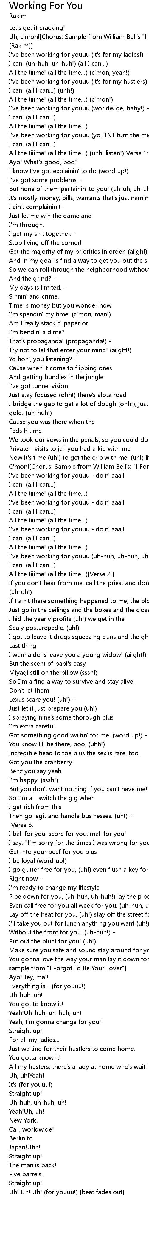 C'mon![Chorus: Sample from William Bell's: "I Forgot To Be Your Lover" (Rakim)] |