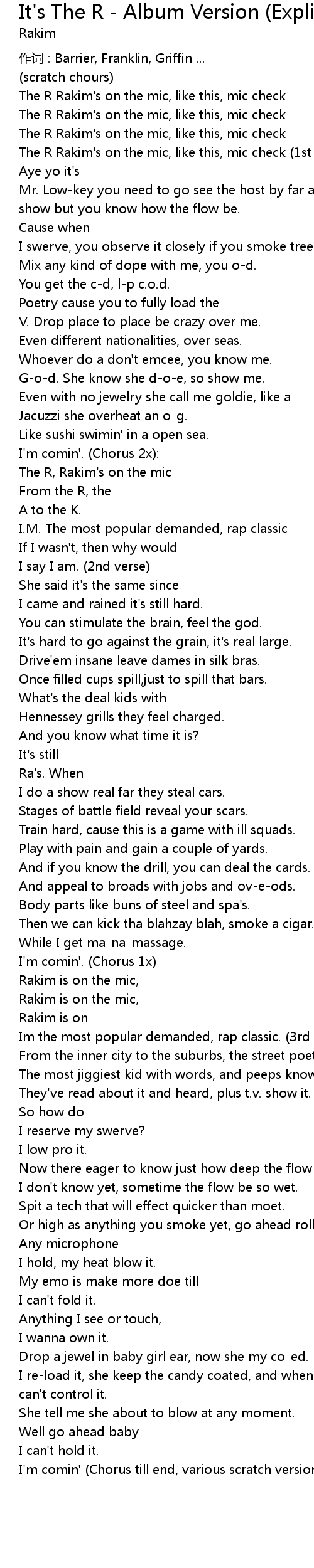 | The R Rakim's on the mic, like this, mic check (1st verse) | |