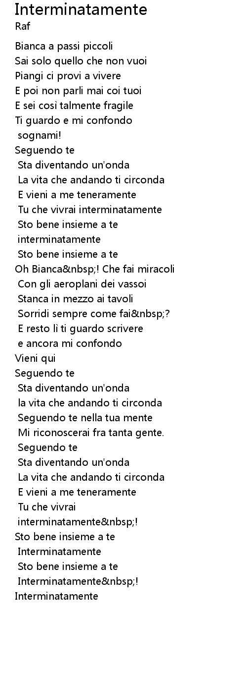 | Song | Interminatamente |