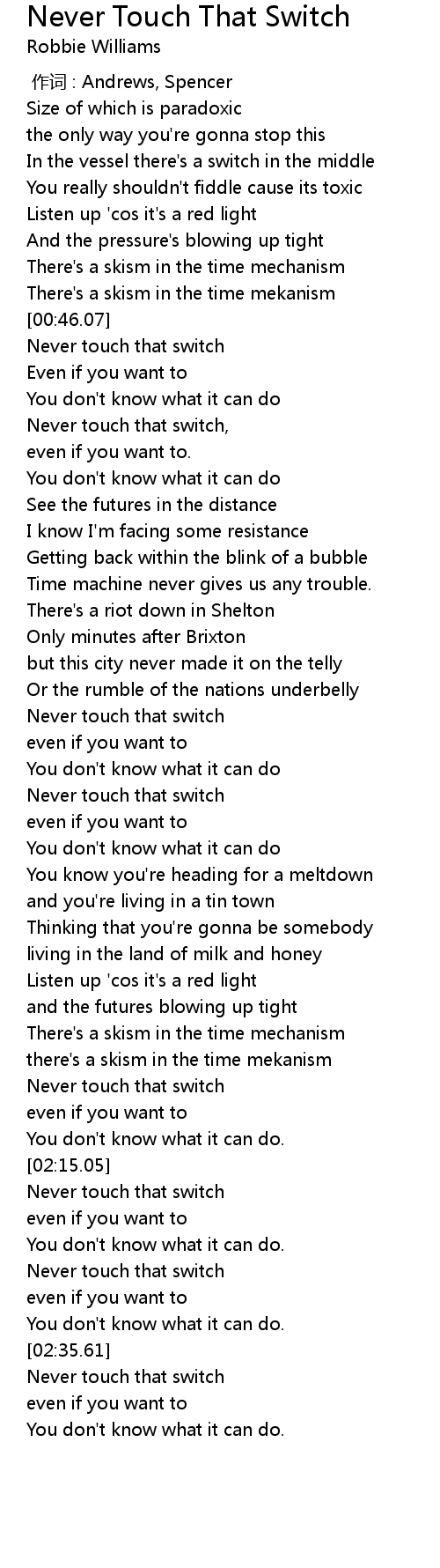| [00:33.26] | You really shouldn't fiddle cause its toxic |