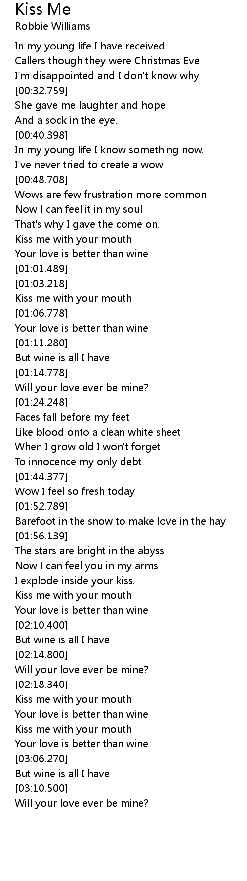 | [01:52.898] | Barefoot in the snow to make love in the hay |