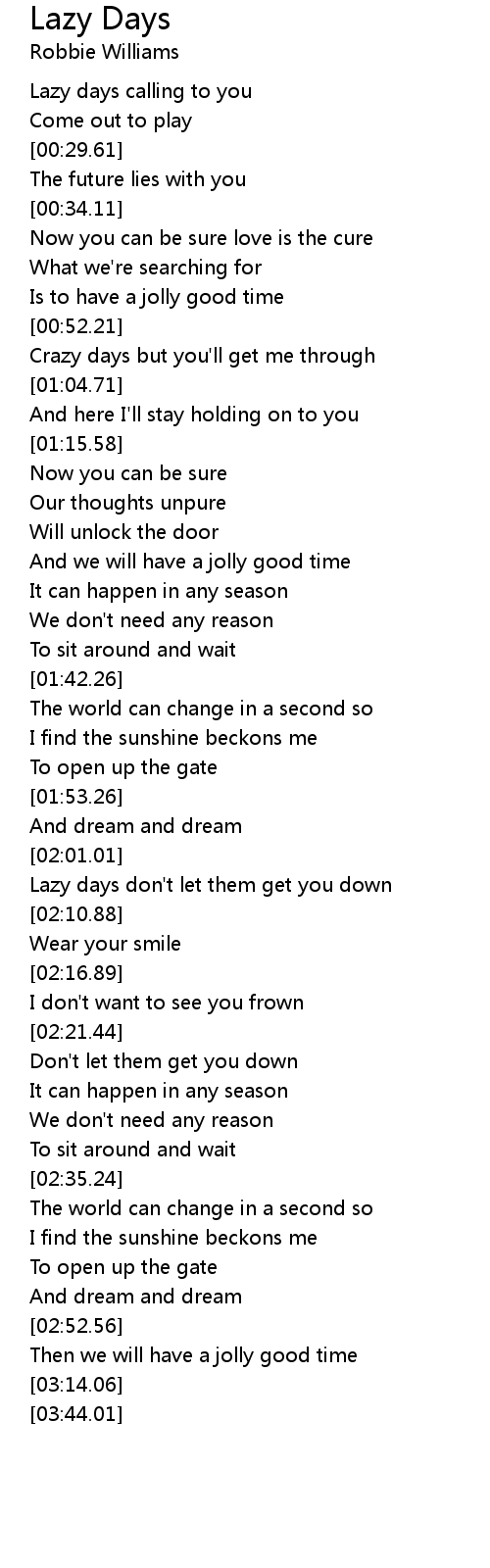 Lazy days don't let them get you down |
