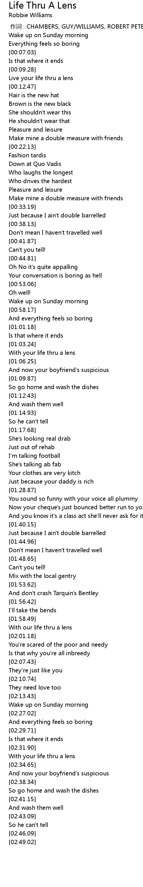 | [00:00.00] | 作词 : CHAMBERS, GUY/WILLIAMS, ROBERT PETER |