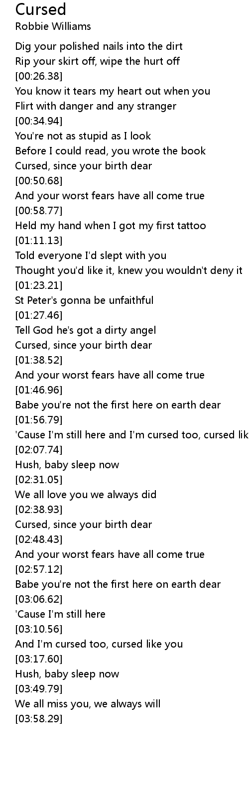'Cause I'm still here and I'm cursed too, cursed like you |