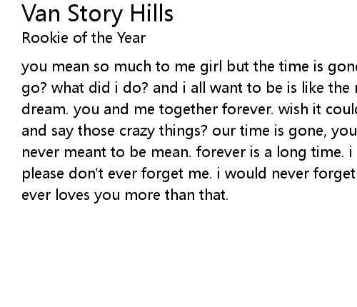 you mean so much to me girl but the time is gone. where are you? where did you go? what did i do? and i all want to be is like the movies. a perfect hollywood dream. you and me together forever. wish it could be. baby why did you leave me and say those crazy things? our time is gone, you left me forever. i swear i never meant to be mean. forever is a long time. i don't think i'm up for that. please don't ever forget me. i would never forget you, i'm not like that. no one ever loves you more than that. |