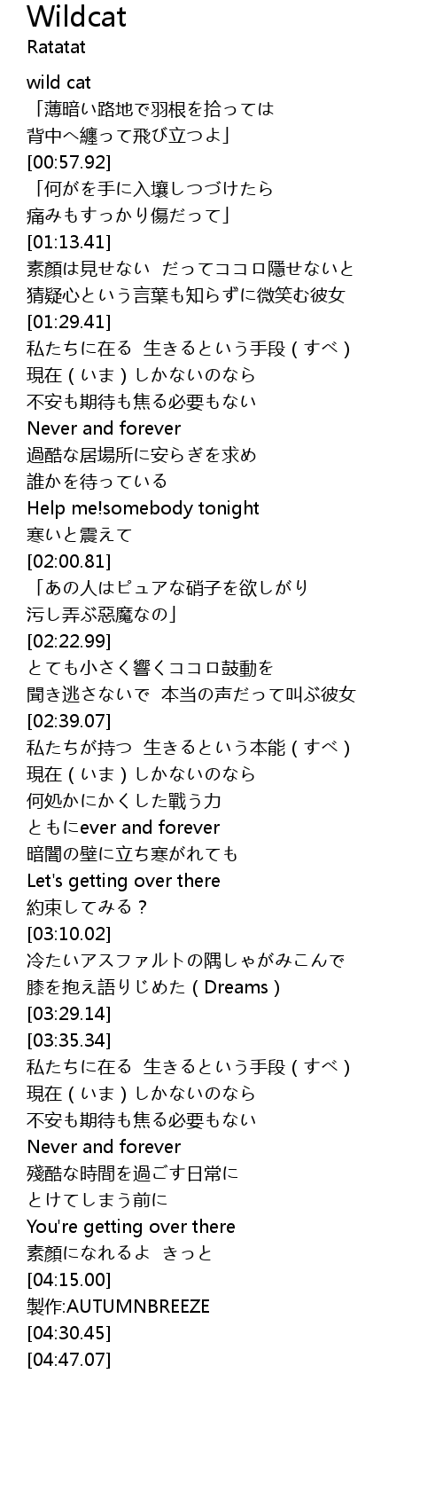 | [04:20.35] | 製作:AUTUMNBREEZE |