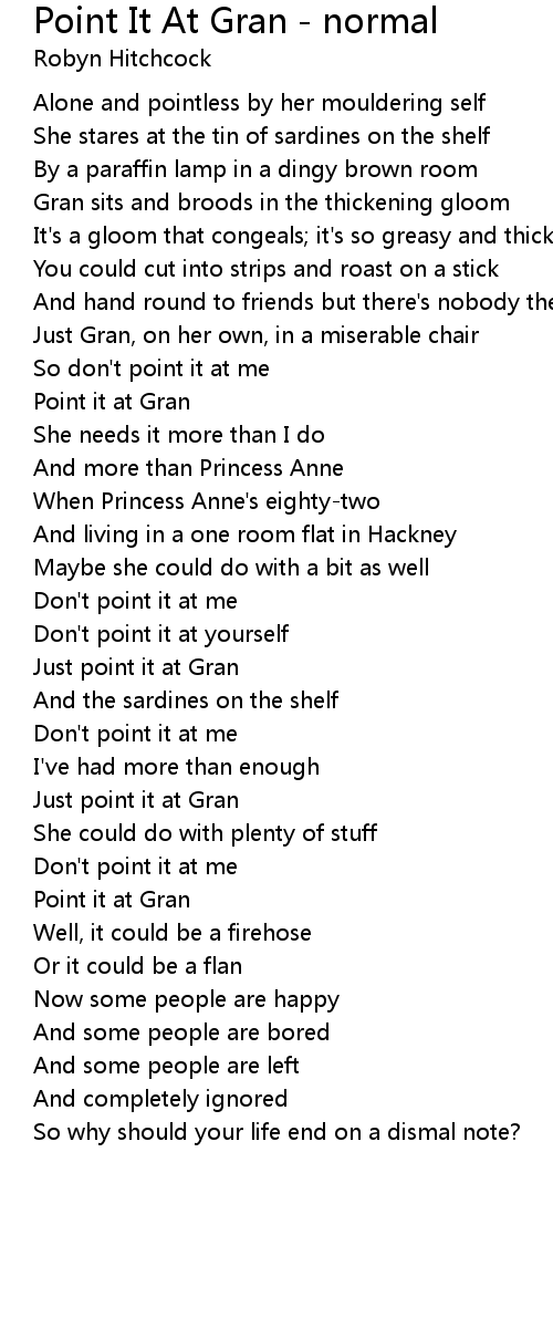 Gran sits and broods in the thickening gloom |
