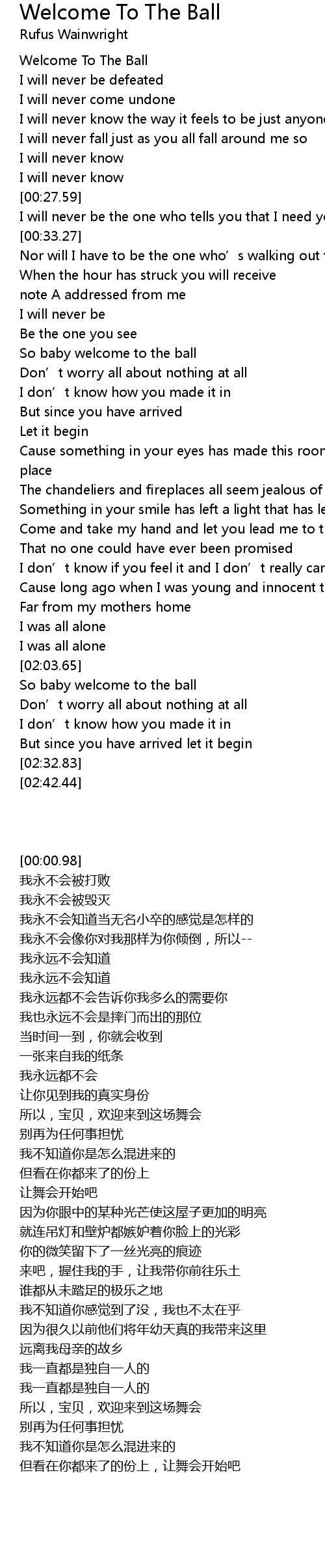 | [00:51.61] | So baby welcome to the ball |