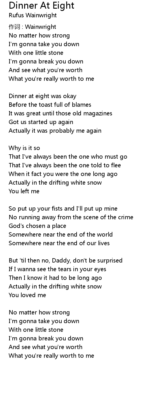 | Song | Dinner At Eight |
