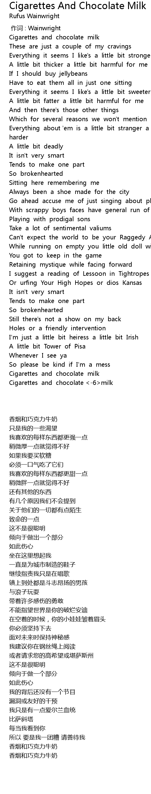 | [03:47.310] | Cigarettes and chocolate <-6>milk |