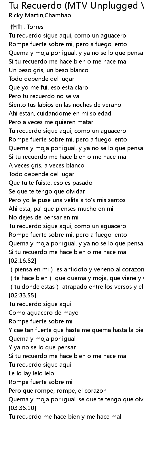 | [03:38.68] | Tu recuerdo me hace bien y me hace mal |