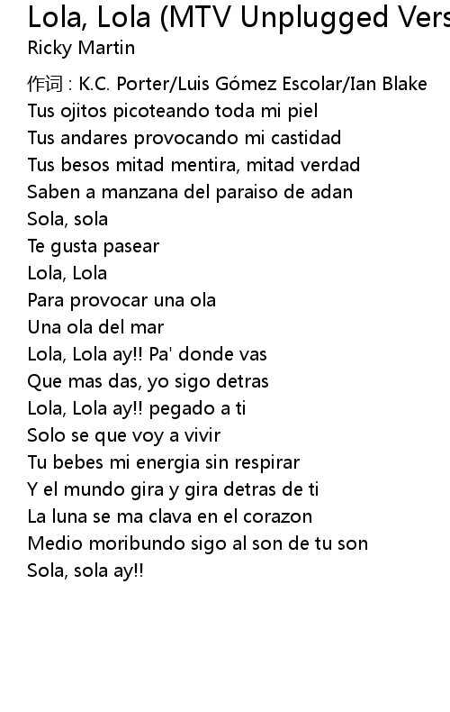 | Song | Lola, Lola (MTV Unplugged Version) |