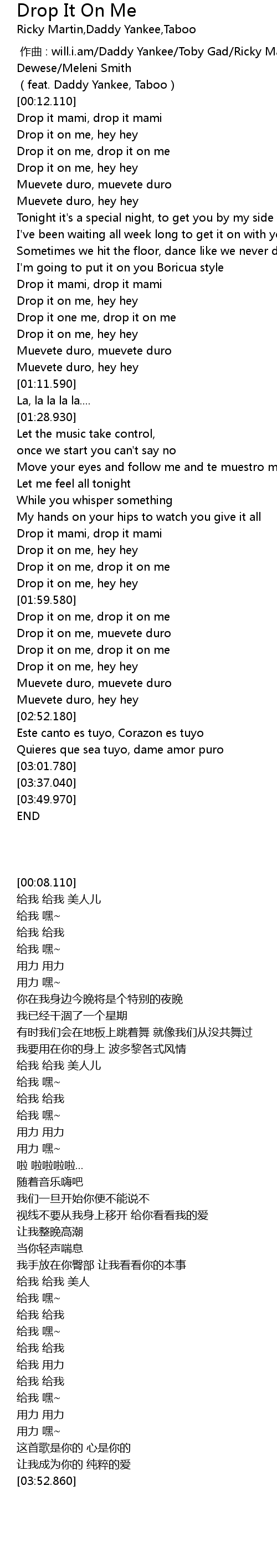 | [00:08.110] | feat. Daddy Yankee, Taboo |