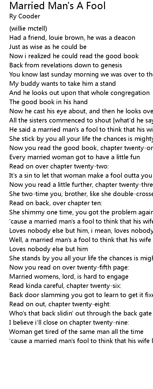 'cause a married man's a fool to think that his wife |