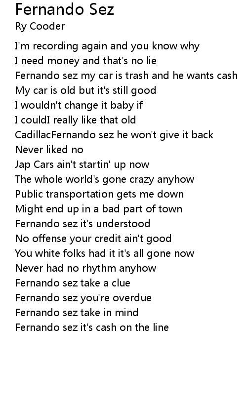 Fernando sez my car is trash and he wants cash |
