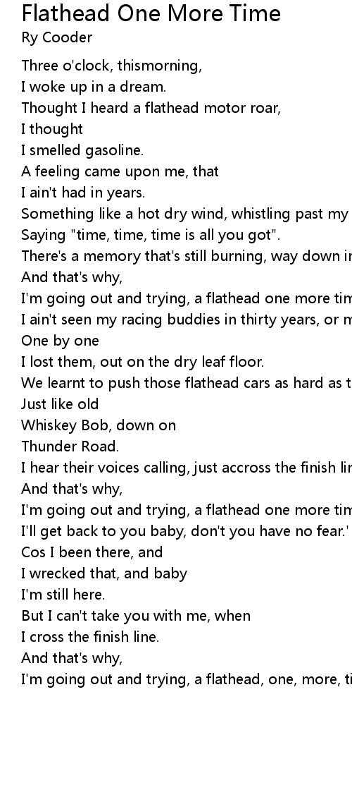 Thought I heard a flathead motor roar, |