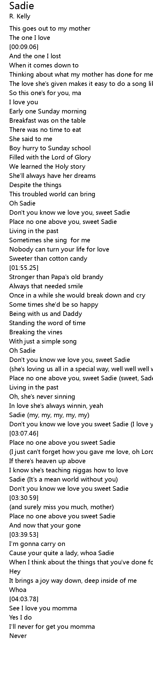 Don't you know we love you sweet Sadie (I love you mama) |