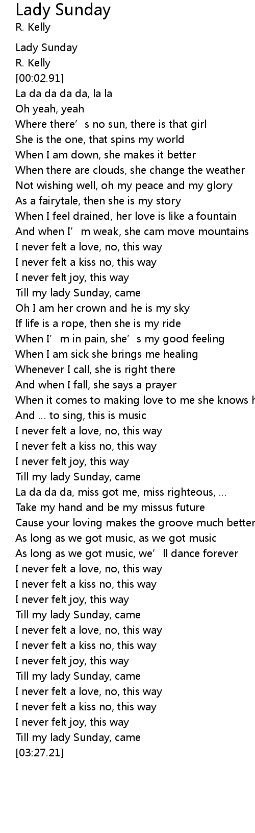 | [03:18.47] | Till my lady Sunday, came |