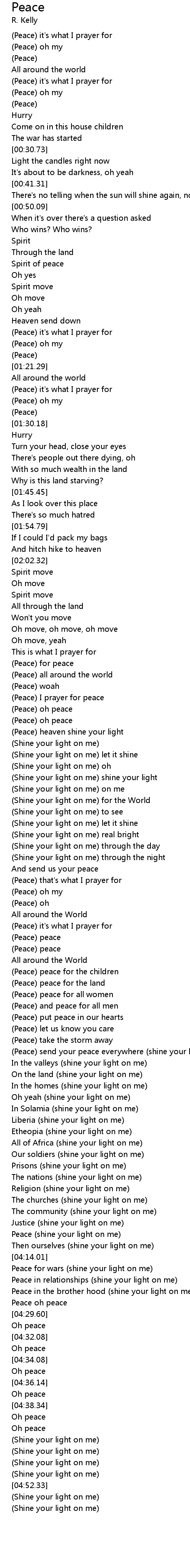 | [03:35.70] | (Peace) send your peace everywhere (shine your light on me) |