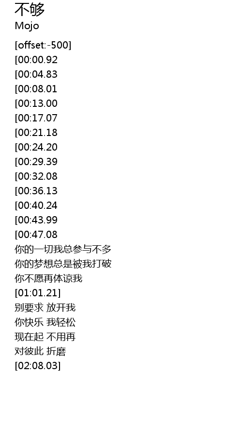 | [01:08.11][00:36.13] | 对你来说我的一切永远不够 |