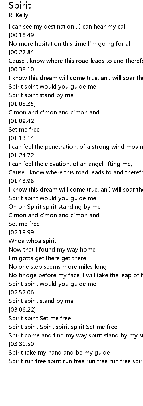 | [02:02.53] | Oh oh Spirit spirit standing by me |