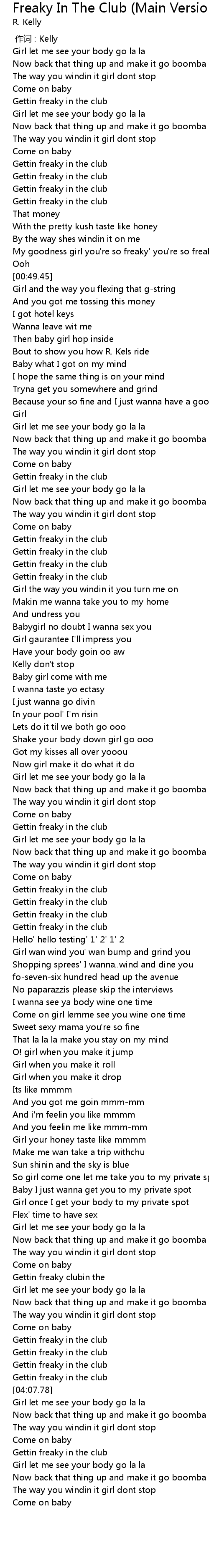 | [00:46.45] | My goodness girl you're so freaky' you're so freaky |