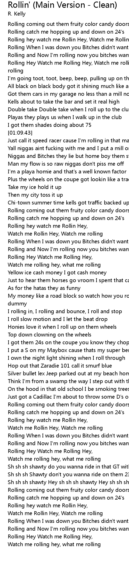 | [02:09.14] | Watch me rolling hey, what me rolling |