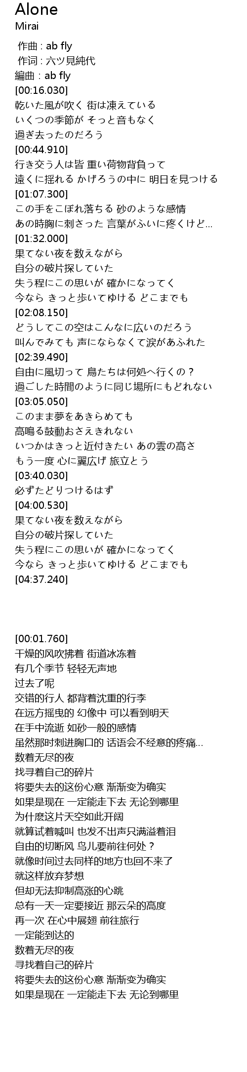 | [04:23.970] | 今なら きっと歩いてゆける どこまでも |