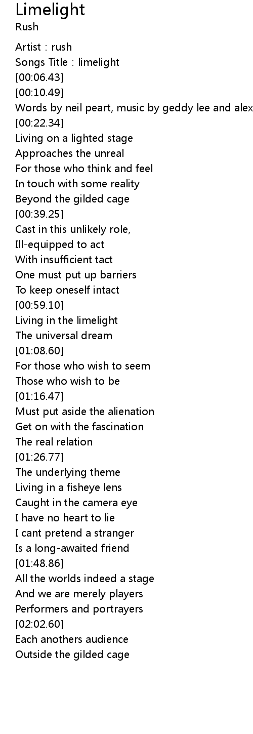 | [00:03.05] | Songs Title: limelight |