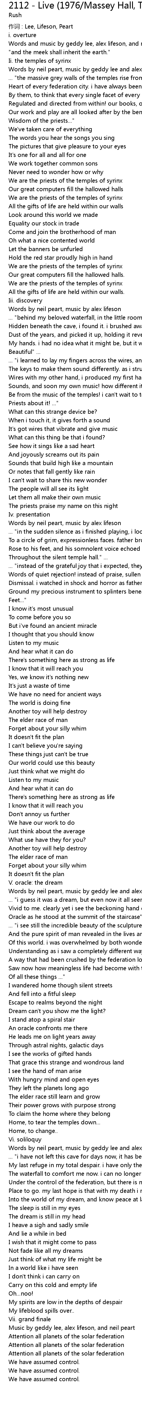 | Song | 2112 - Live (1976/Massey Hall, Toronto) |