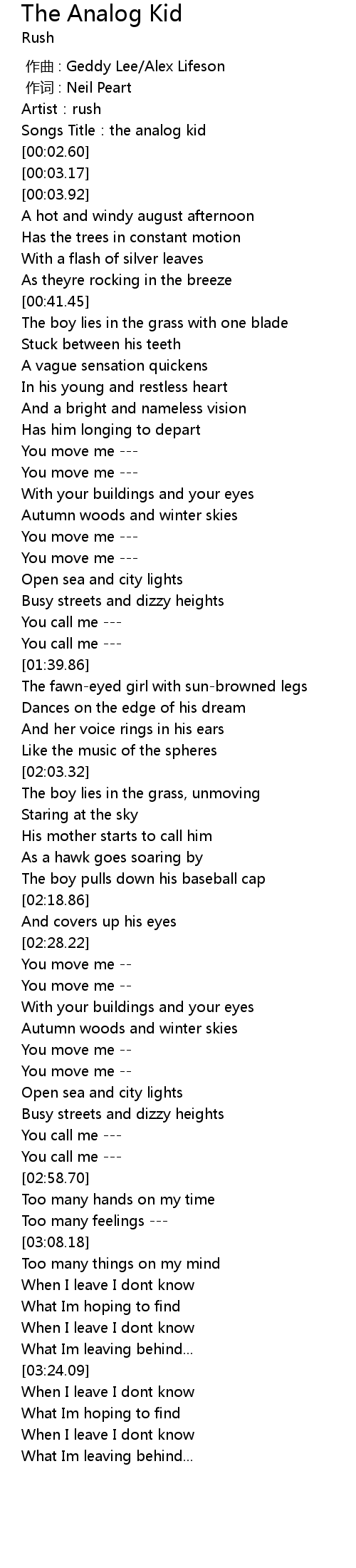 | [00:00.00] | 作曲 : Geddy Lee/Alex Lifeson |