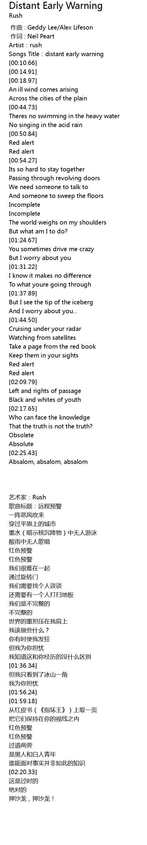 | [00:00.693] | 作词 : Neil Peart |