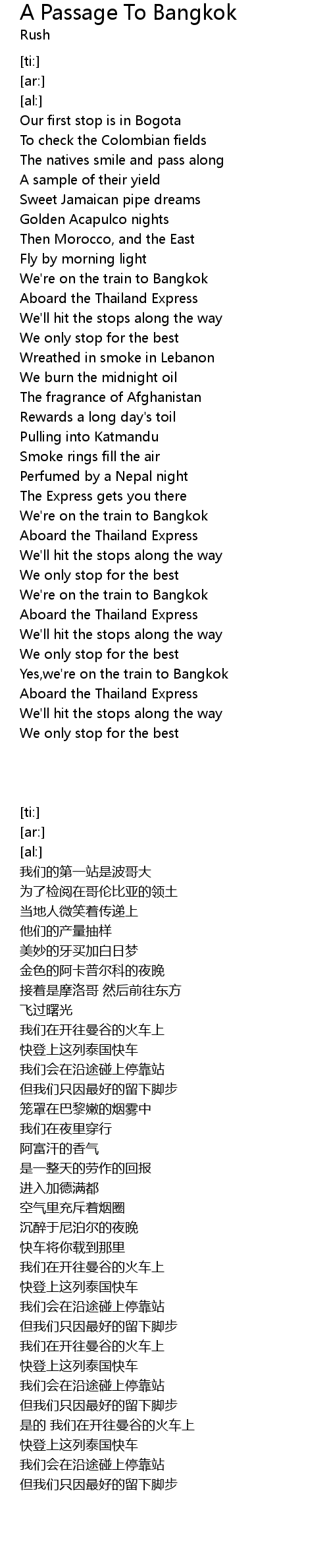 | [03:01.24] | Yes,we're on the train to Bangkok |