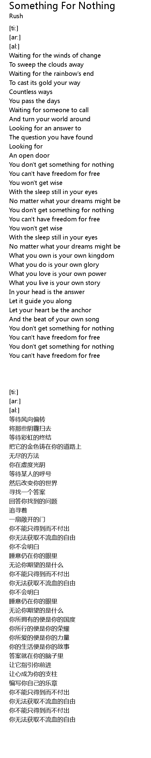 | [01:33.50] | You can't have freedom for free |