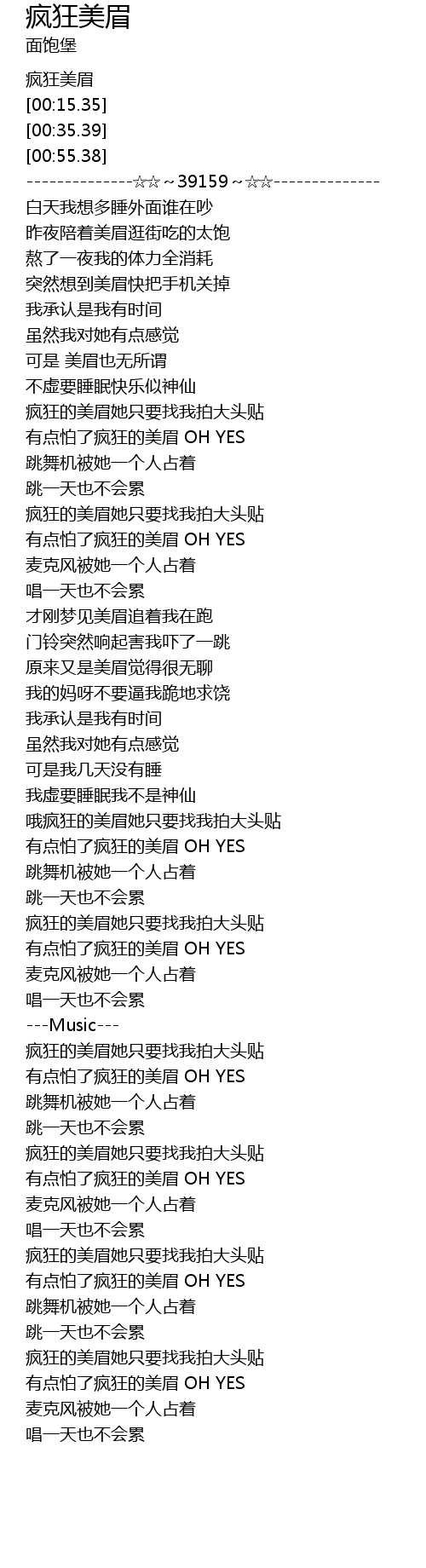 | [02:03.11] | 疯狂的美眉她只要找我拍大头贴 |