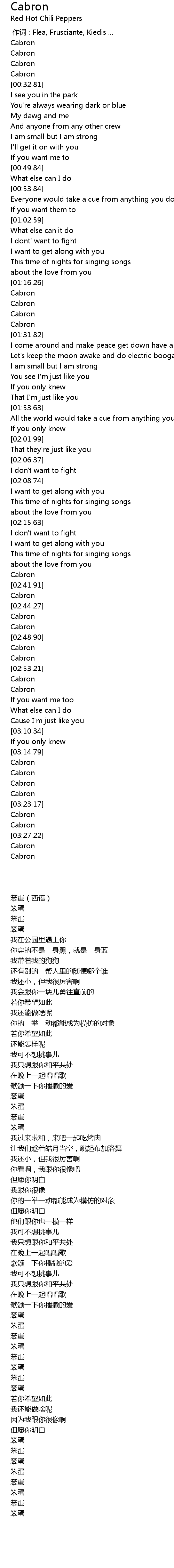 | [00:00.00] | 作词 : Flea, Frusciante, Kiedis ... |