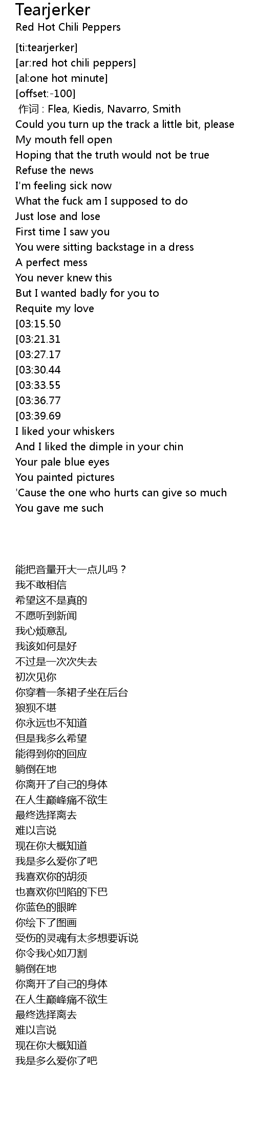 | [00:00.00] | zuò cí : Flea, Kiedis, Navarro, Smith |