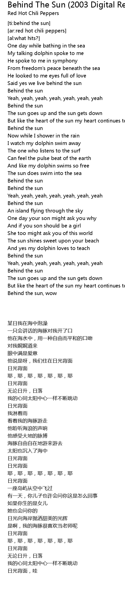 Behind The Sun (2003 Digital Remaster) Lyrics