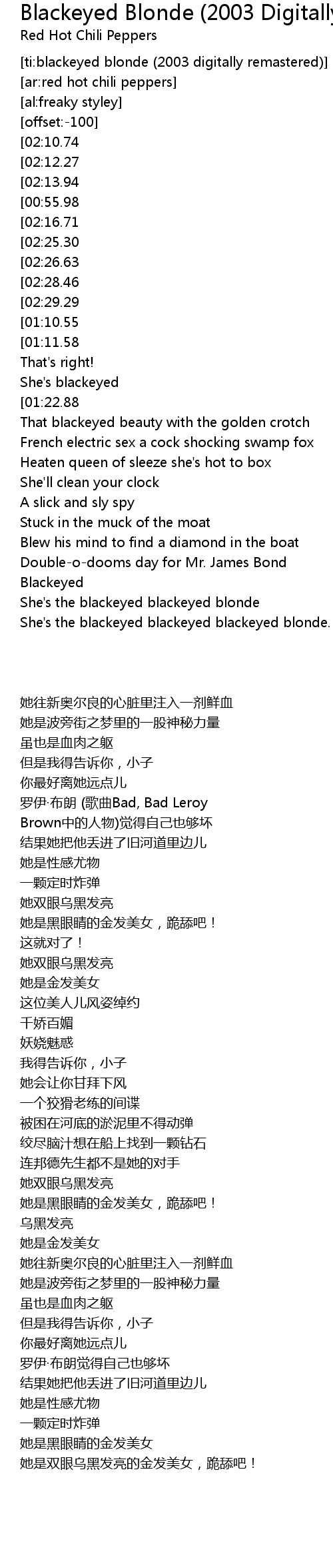 [02:33.91] She's the blackeyed blackeyed blackeyed blonde. Get down!