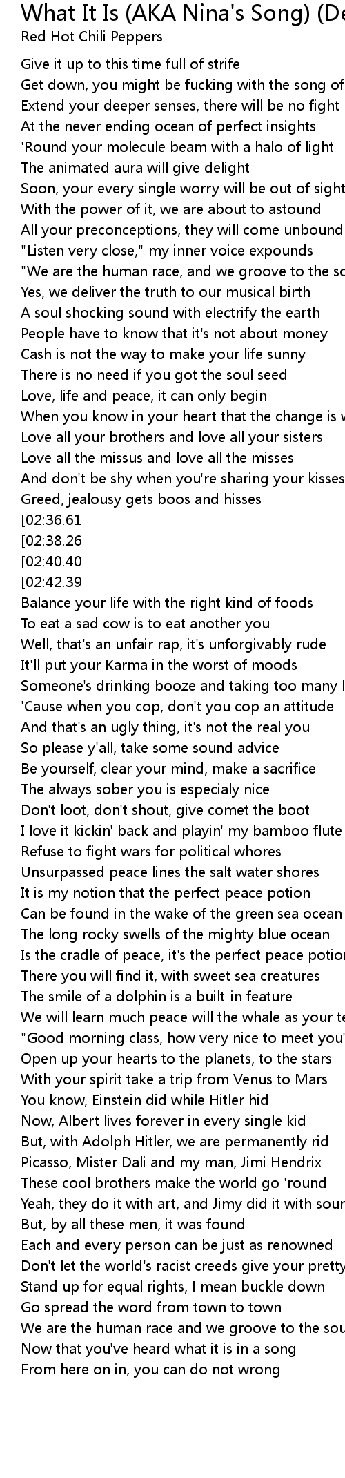 [01:13.67][02:40.40] What it is, what it is, what it is in a song