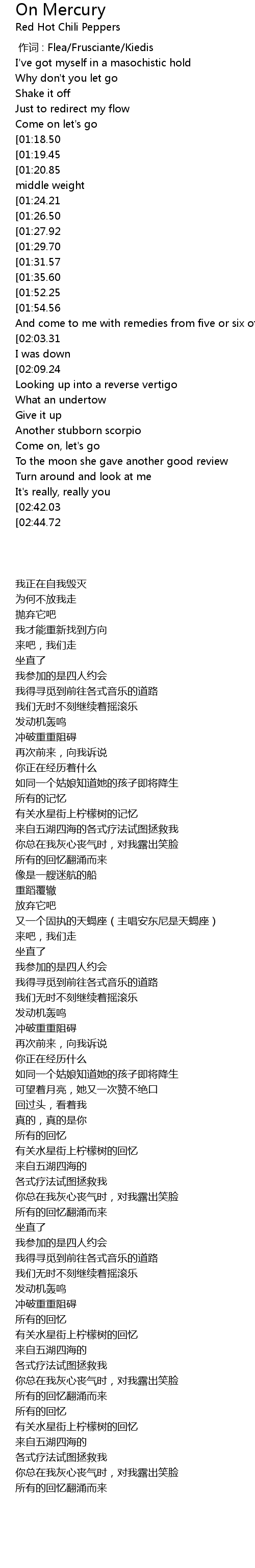 | [00:00.00] | 作词 : Flea/Frusciante/Kiedis |