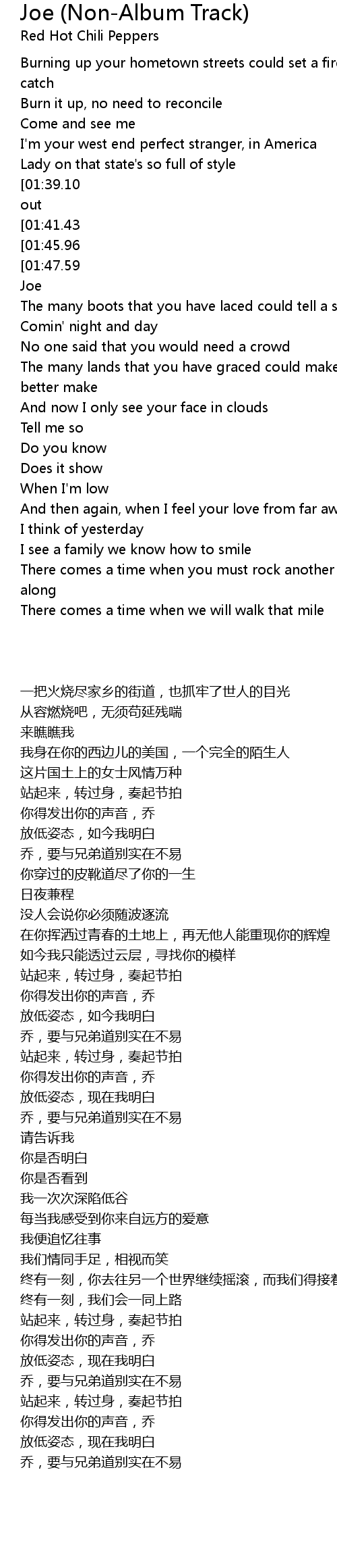 | [00:45.92][01:41.43][01:55.25][03:19.39][03:33.32] |