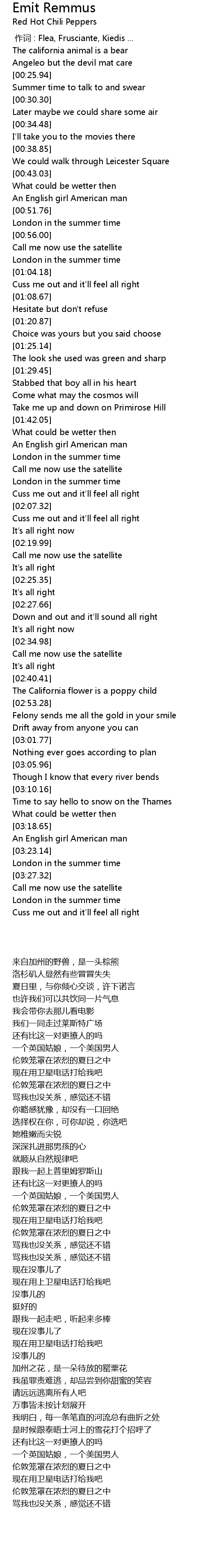 | [00:00.00] | 作词 : Flea, Frusciante, Kiedis ... |