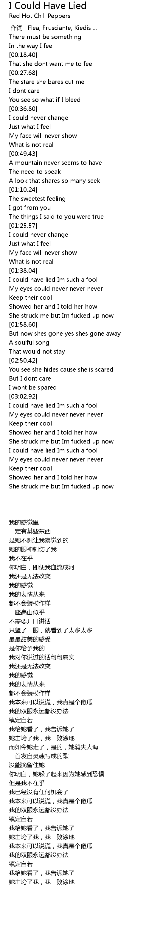| [00:00.00] | 作词 : Flea, Frusciante, Kiedis ... |
