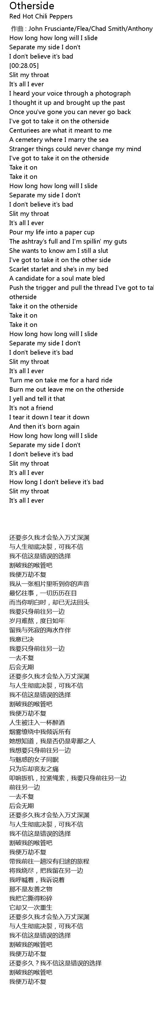 | [00:00.00] | 作曲 : John Frusciante/Flea/Chad Smith/Anthony Kiedis |