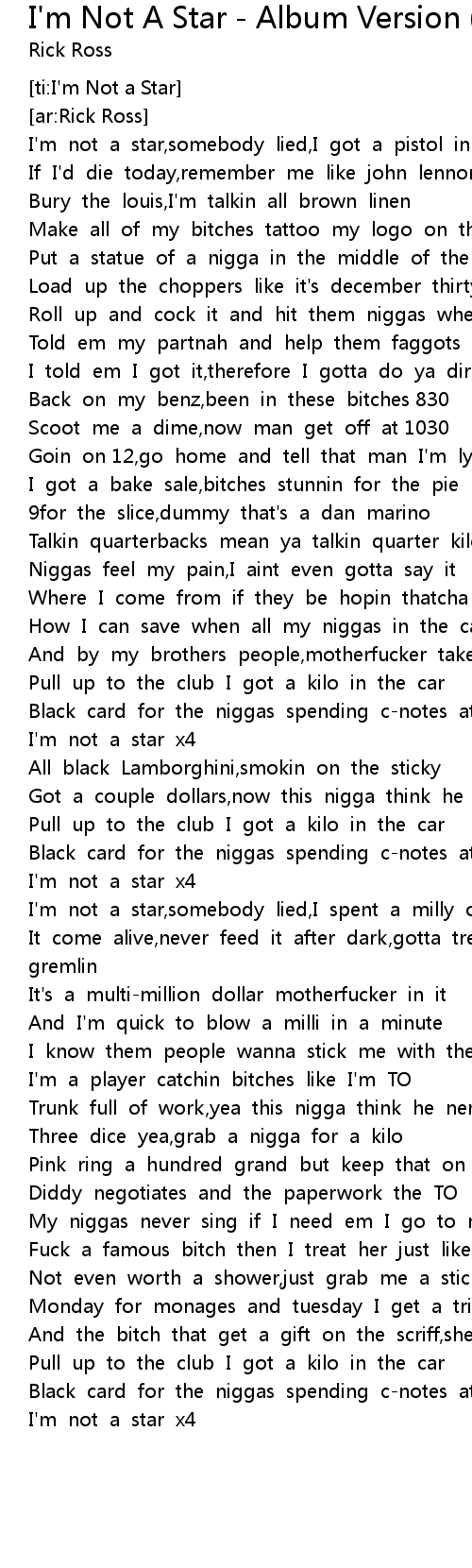 I'm not a star,somebody lied,I got a pistol in the car,a 45 |