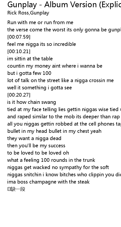 | [00:04.36] | the verse come the worst its only gonna be gunplay. |