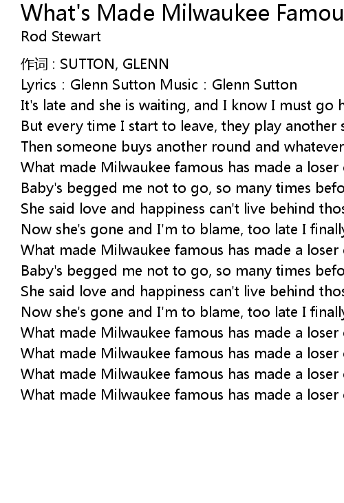 | Song | What's Made Milwaukee Famous (Has Made A Loser Out Of Me) - Single Version |