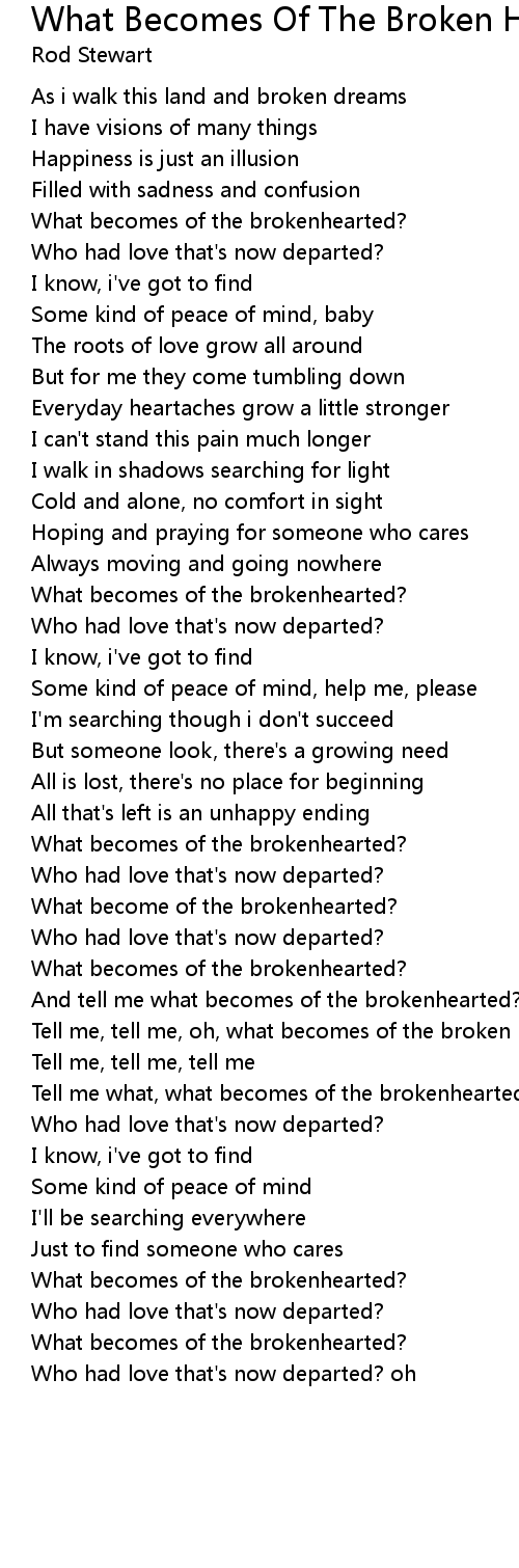 And tell me what becomes of the brokenhearted?